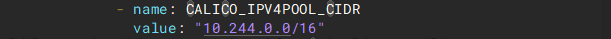修改 calico.yaml 文件中的 CALICO_IPV4POOL_CIDR 配置,修改为与初始化的 cidr 相同